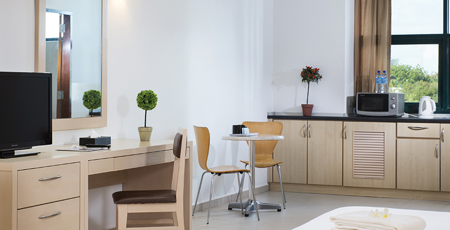 - Dapur kecil dengan microwave dan kulkas mini