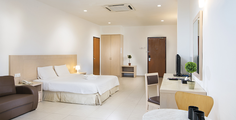 - Unit suite OYO Bekasi yang luas dirancang dengan perabotan King Bed atau 2 x Full Size Bed (4 kaki)